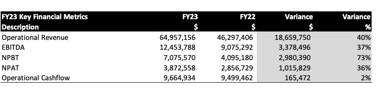 NPAT and EBITDA increases outpaced revenue increased. This is good, showing signs of operational leverage.